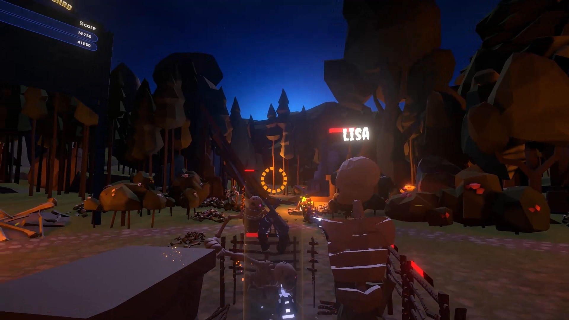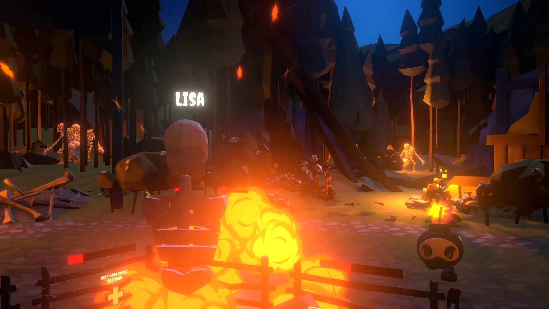 Like all SyncArena games, the play area dynamically adjusts to individual settings: walls and barriers are represented by wooden fences, and physical objects are transformed into items on the village square.