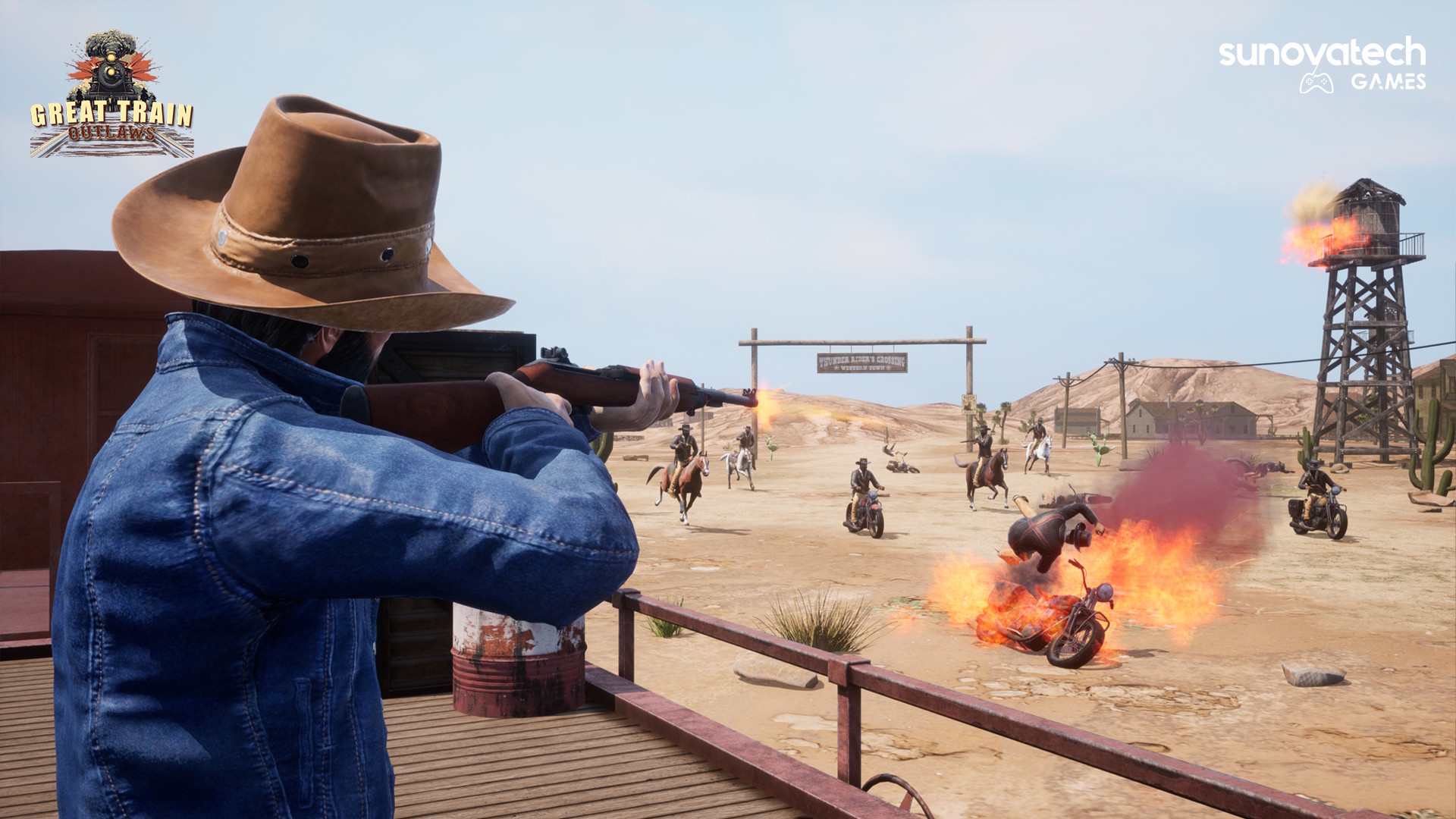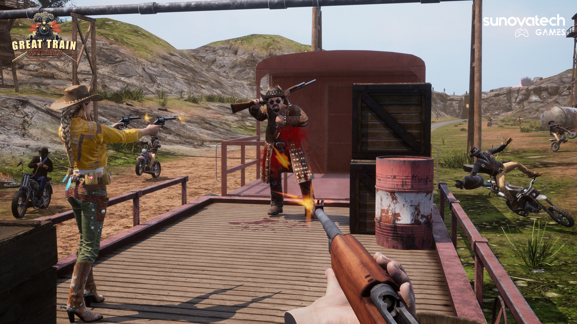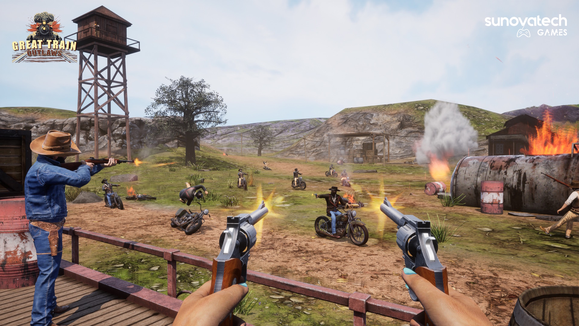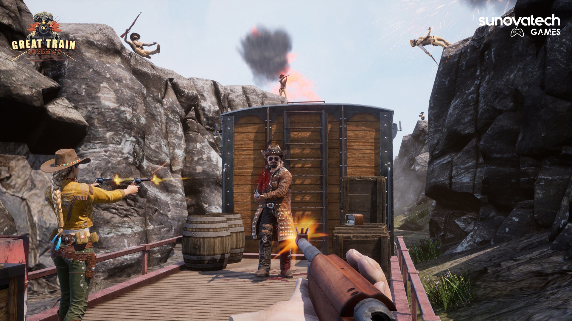 Step into the boots of a fearless gunslinger in a pulse-pounding VR showdown set in the untamed Wild West. Great Train Outlaws is a 4-player co-op action shooter where players embark on a high-stakes train heist, battling ruthless outlaws across roaring railcars, collapsing bridges, and scorching desert towns.