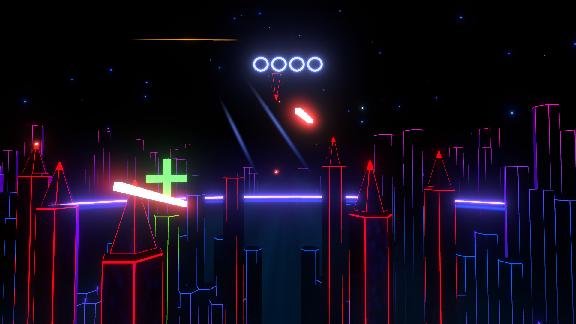 Every seed generates a unique levels by combining various handcrafted phases. These phases are displayed as tunnels or arenas and are seamlessly connected in many different orders and variations. All to create fast action paced gameplay mixed with more relaxed puzzle-like or transitional phases.