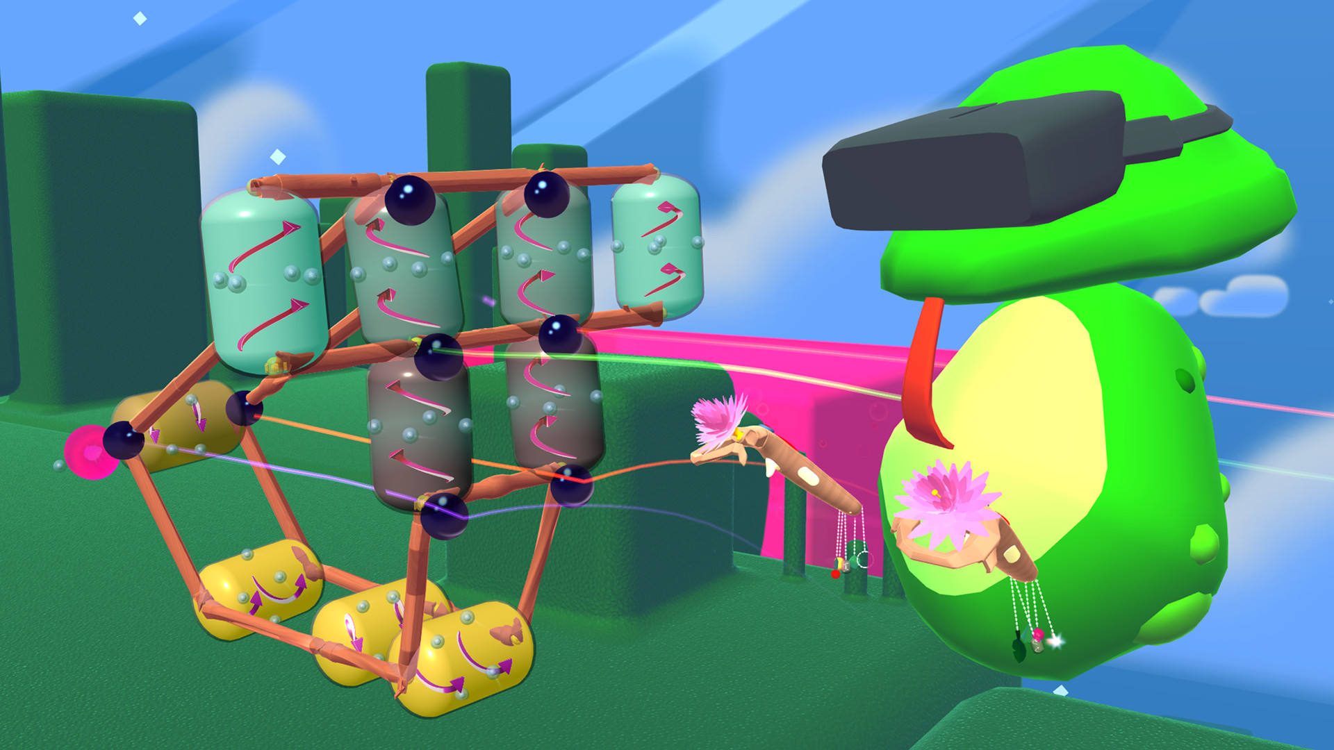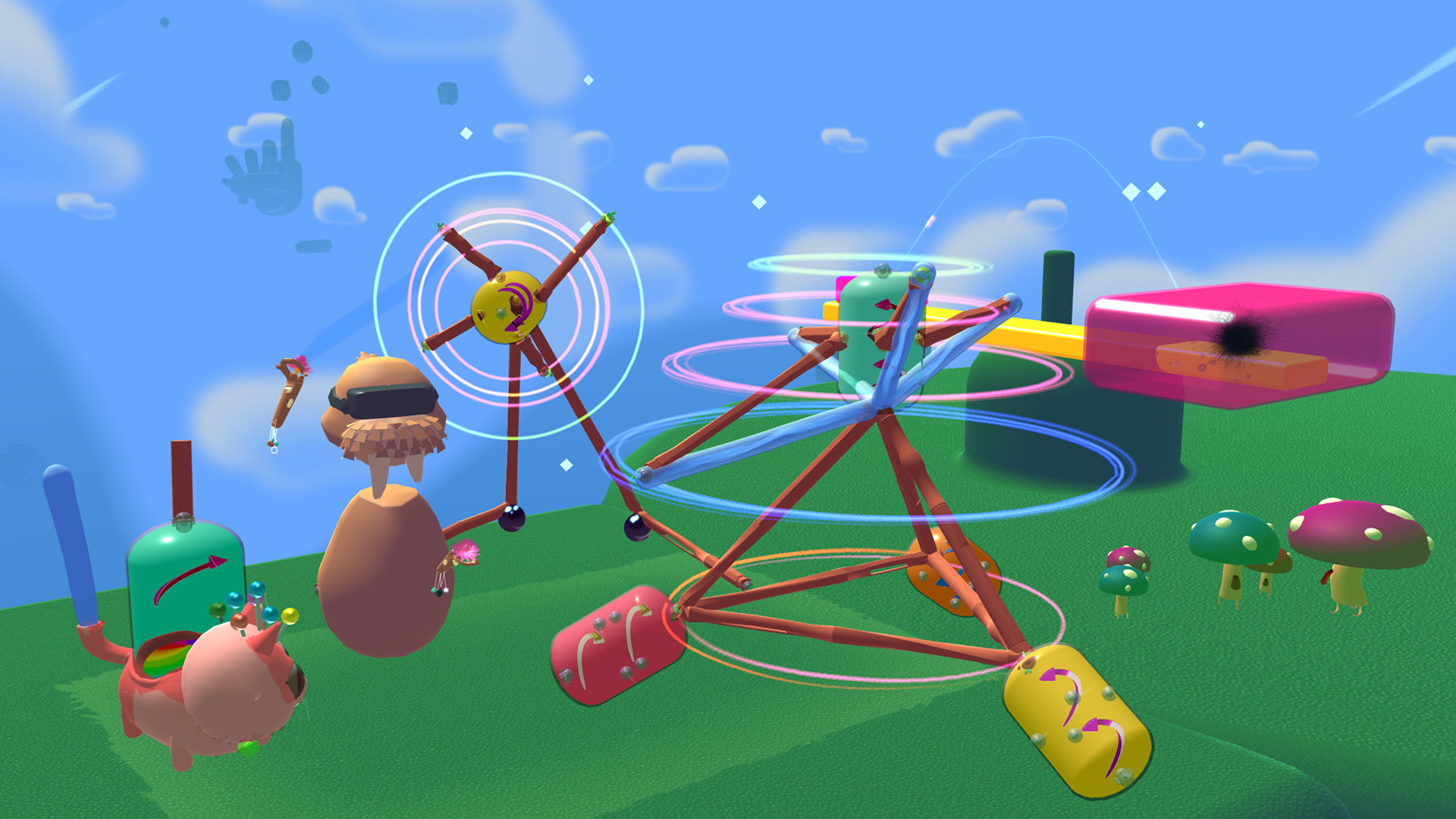 A surreal building game for VR. Create life-sized contraptions as tall as you can reach, then send them whirling, flinging, and trundling off to solve puzzles on the other side of a floating island. There are no right or wrong solutions, so bring your creativity.