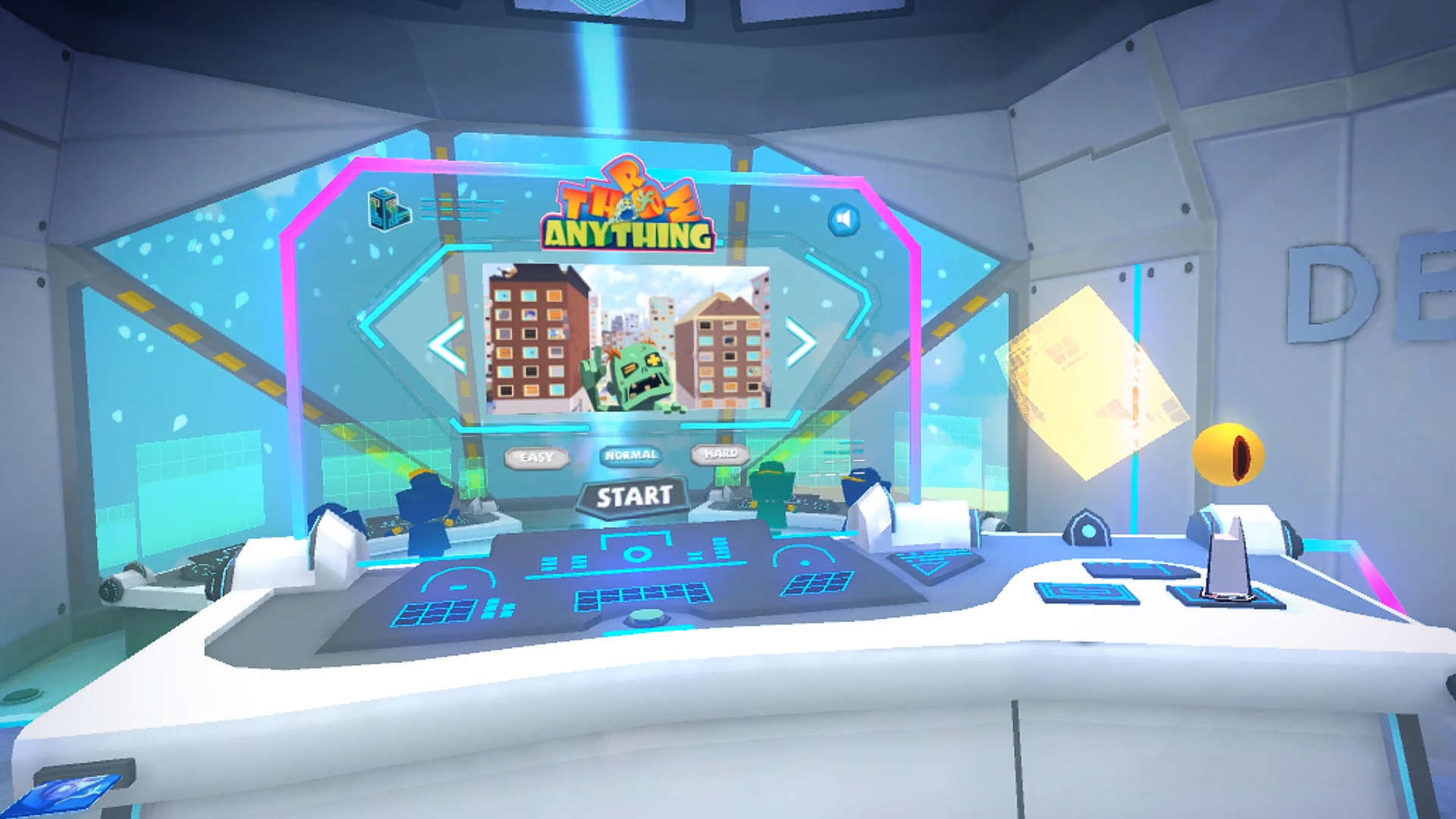 There is nowhere to run... and nowhere to hide as zombies climb up the walls hoping to satisfy their appetite for brains. The only way to survive: reload your guns, destroy all furniture in the room, grab them all, and throw anything you can find to take them down.. and we mean ANYTHING. Face off against starving zombies in high-rise buildings across the globe in the VR action defense game, Throw Anything!